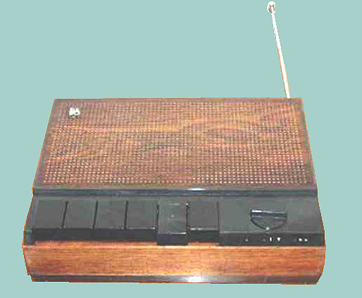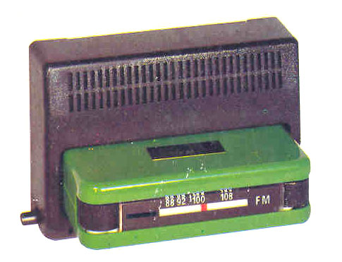 (Green model) [1973] Solid state radio. Fits in car mount or mains-powered