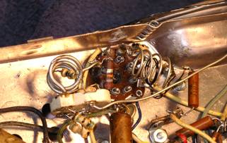 of the under-chassis. Note the VHF coils, fixed ceramic tuning caps, and the
